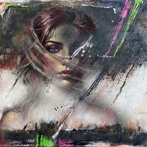 In this new series, I explore various enigmatic faces and what lies behind the façade. In this work, I have captured the tension between clarity and uncertainty. The abstract colours and forms reflect inner conflicts and hidden thoughts. It brings a dynamic, almost electric energy to any space and invites you to explore the invisible…