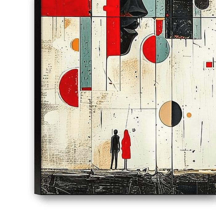 "Faces of Humanity" is a captivating work of art characterised by its bold composition and vibrant use of colour. This painting is a profound reflection on the complexity of human nature, symbolised by merging facial features and a diverse set of small figures moving beneath the central forms. It is as if the painting captures the stories and journeys of each individual and brings them together in a larger context.