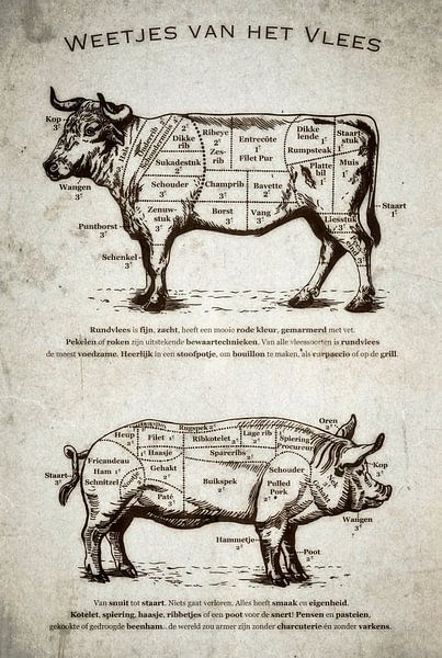 It started when I was patiently waiting my turn at my local butcher for the umpteenth time. I noticed how little decorative material hung on the wall there. To be honest, there was nothing nice to look at. And if there was anything hanging there it had nothing to do with the butcher's shop. A missed opportunity, because with a little creativity you can turn a butcher's shop into something attractive that can also teach you something. As a butcher you can…