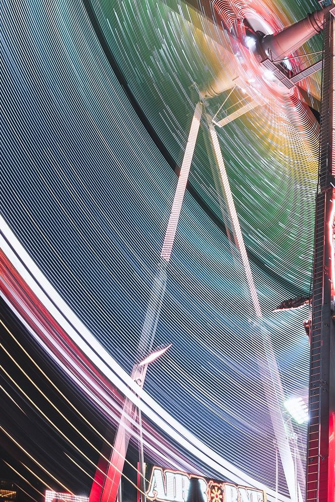 Nice colorful picture because of the lights on the wheel that spun around at a rapid pace. The slow shutter speed creates the beautiful effect of this. Everything standing still is her sharp.