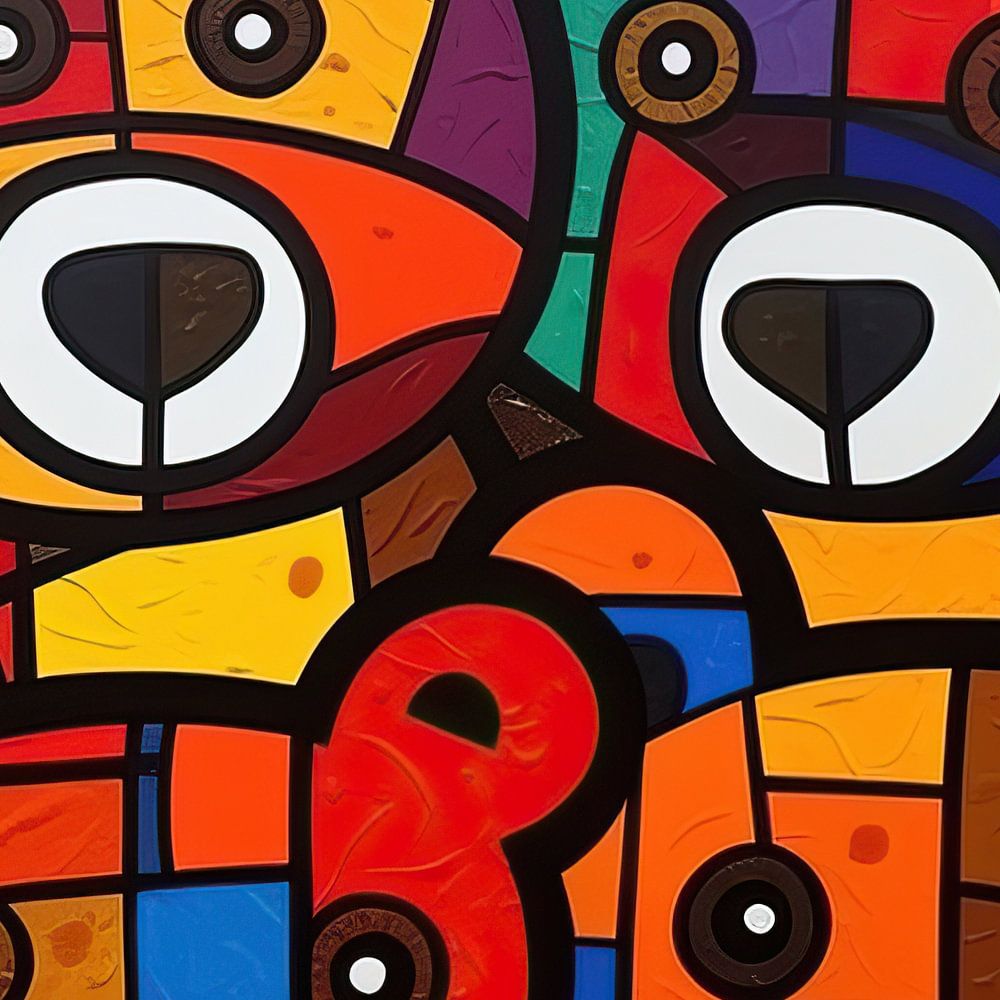 Details: bears, colourful, abstract, art, painting, modern, cosy, playful, childlike, cheerful
