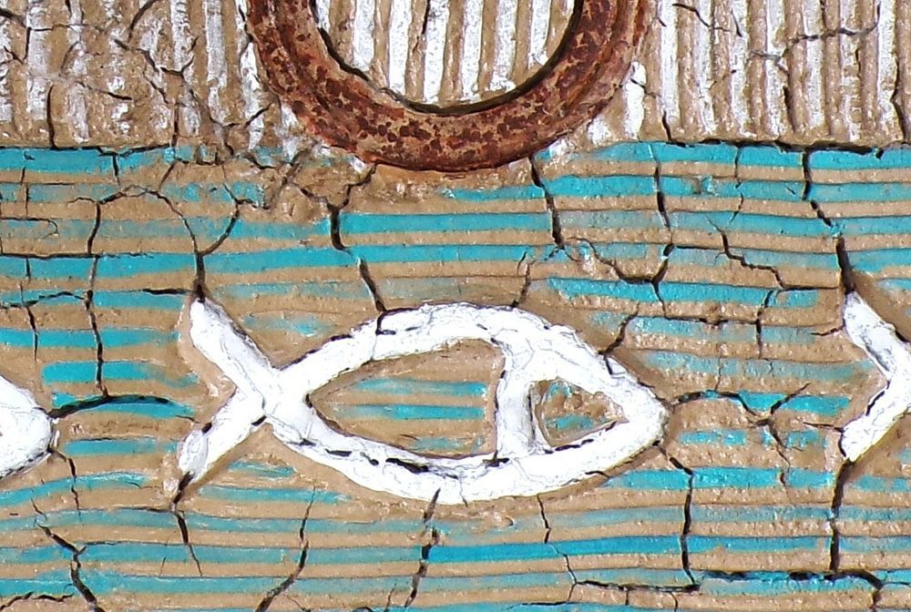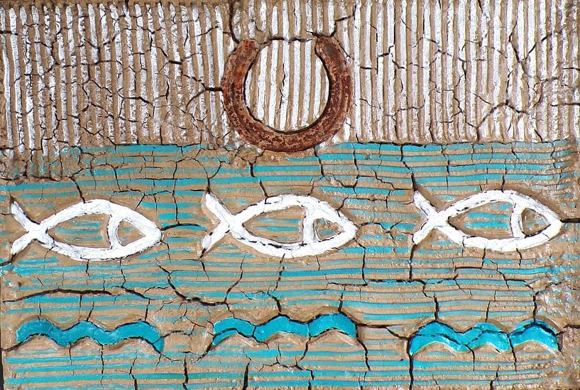 A meaningful image with a lot of symbolism and an optimistic view of the future. Created from the mud of the Ahr, which rushed through the valley during the night of the flood and covered everything. Now the mud (bound in colourless acrylic) is used as pigment for various paintings.