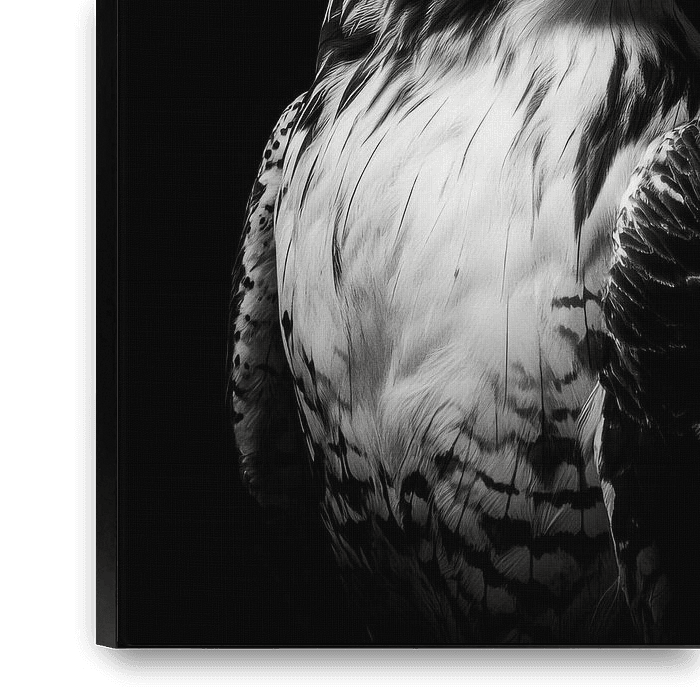 The bird of prey sits majestically and impressively in the centre of attention, its sharp eyes radiating determination and grace. The interplay of light and shadow lends it a mystical aura. Perfect for a living room or office, where it embodies strength and elegance and enriches any room with its presence.