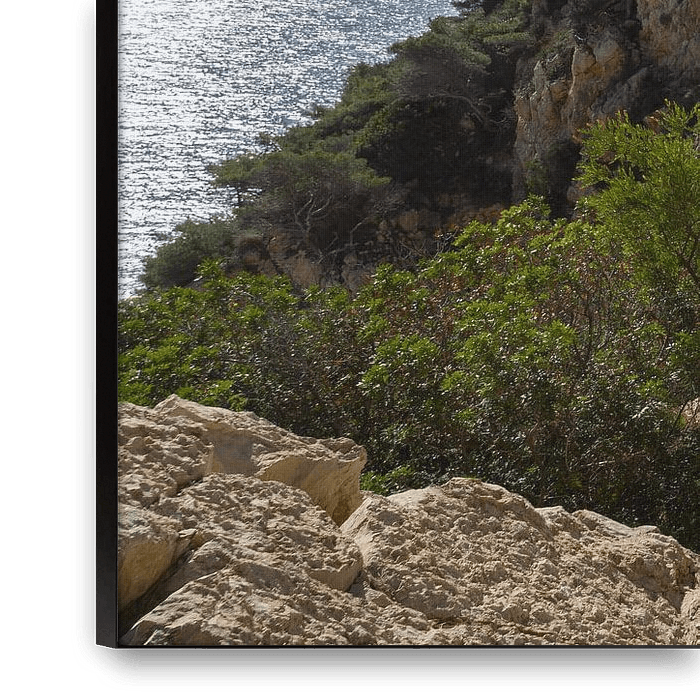 Buy the photo Falla del Moraig - Rocks and the Mediterranean Sea by Adriana Mueller on canvas, ArtFrame, poster and wallpaper, printed on demand in high quality.
