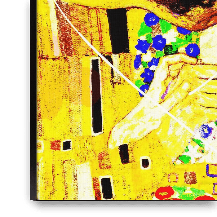 A modern interpretation of The Kiss of Gustav Klimmt on a collage of famous 'love paintings' ( Salvador Dali, Gibran, Andy Warhol, Frans Hals, Robert Indiana, Romero Britto, Albrecht Durer, Tracey Emin).