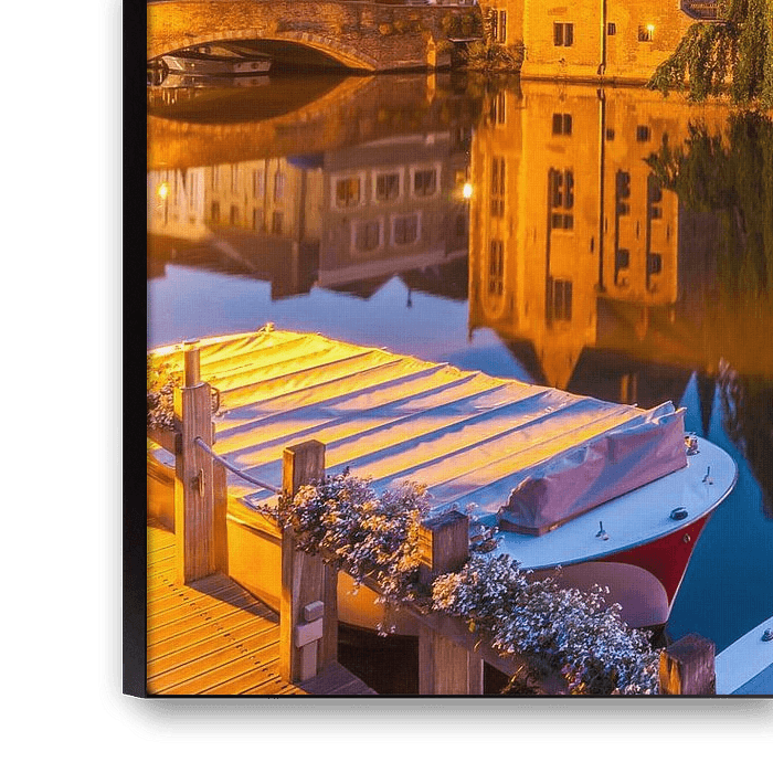 Buy this landscape artwork Famous Rozenhoedkaai at the old town of Bruges at night by Werner Dieterich on canvas, ArtFrame, poster and wallpaper, printed on demand in high quality.