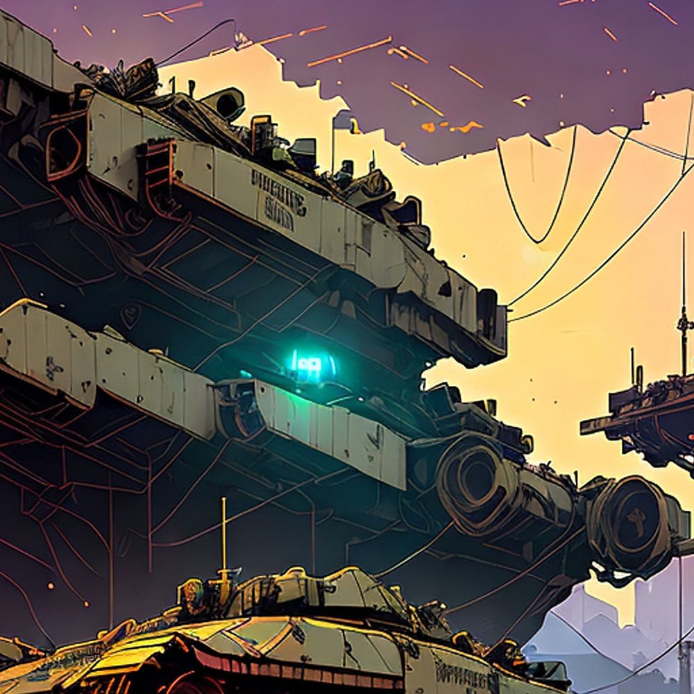 Buy this digital art artwork Fantasy landscape with tank by insideportugal as a reproduction on canvas, ArtFrame, poster and wallpaper, printed on demand in high quality.