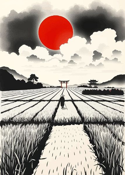 Buy this landscape artwork Farm Zen Inspired Japanese Ink Landscape Art by MIROKKU on canvas, ArtFrame, poster and wallpaper, printed on demand in high quality.