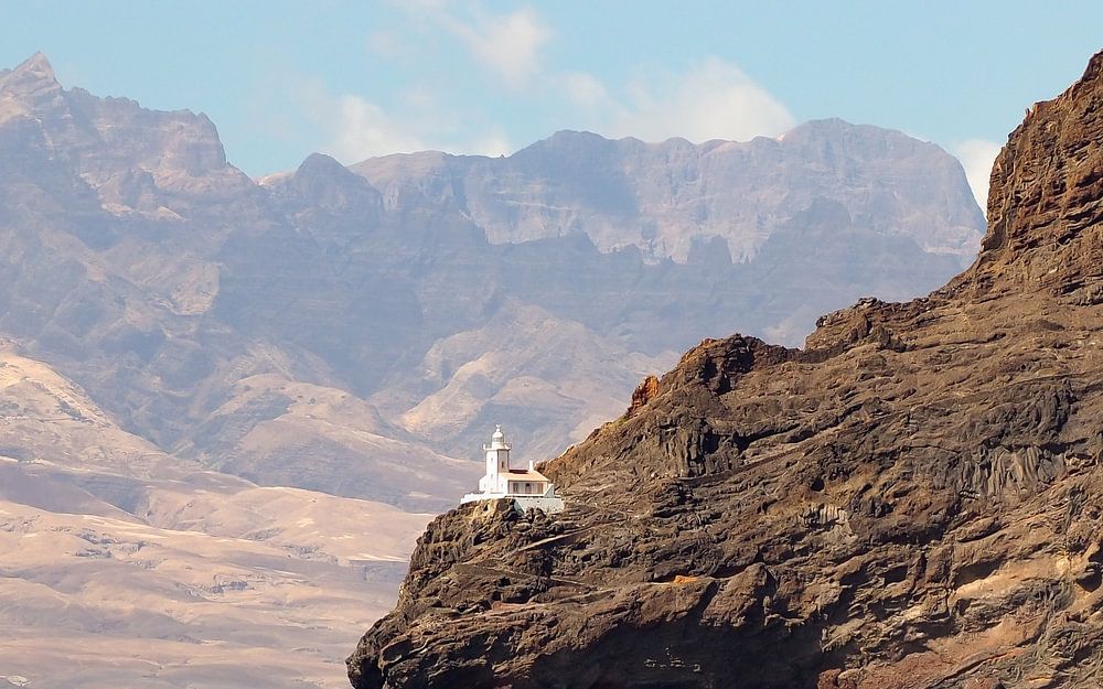 Modern navigation equipment means that lighthouses are no longer as important to navigation as they once were. Yet this beacon, on the south-western tip of Ilha de São Vicente, still serves as a powerful landmark. After a long night at sea, I knew that behind this lighthouse lay the final destination of the trip. From Boa Vista, the voyage had not been easy. South of the northern Cape Verde islands, the wind can be quite gusty. And as erratic as the wind, the volcanic coast is erratic and dry. The dark rocks make the white of the lighthouse stand out even more. The island of Santo Antão in the background lights up nicely in the sun, adding depth to the photo. The band of clouds at the top, and the strip of water at the bottom, frame the image. This puts extra emphasis on the Farol de Dona Amélia.