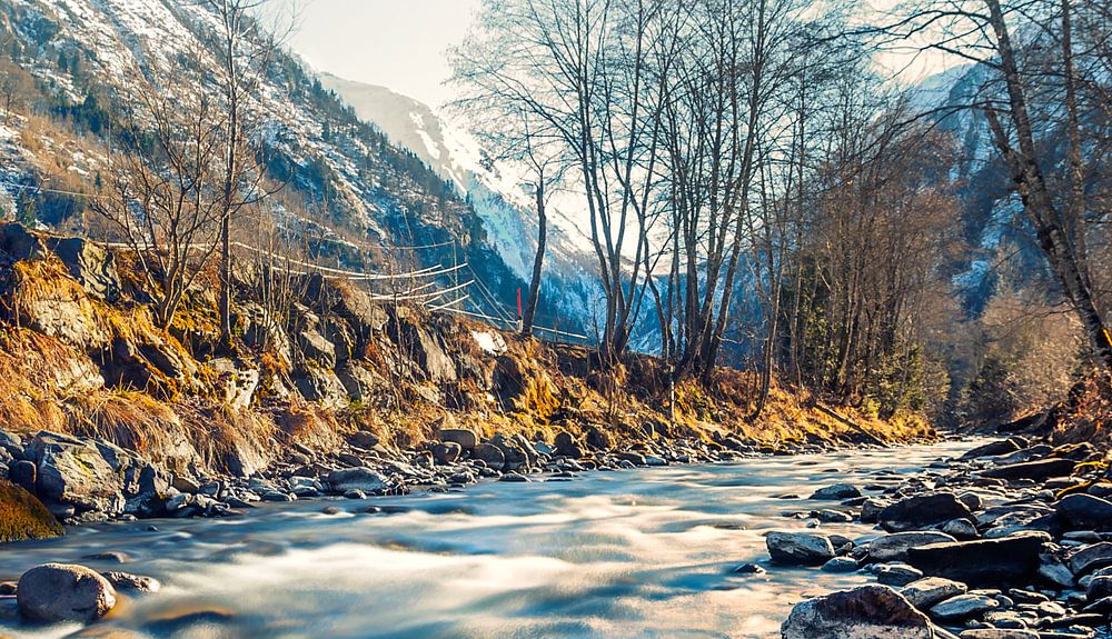 Fast-flowing river with meltwater among the mountains of Kaprun Austria