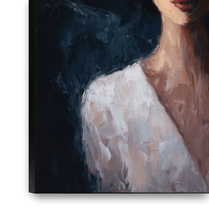 Femme Fatale is a powerful and sensual portrait combining mystery and seduction. The beautiful woman wears a wide, light hat that makes her eyes disappear completely in shadow. This subtly directs attention to her red lips and posture. She does not look at you, but her presence is unmistakably felt. This is a woman who has nothing to…