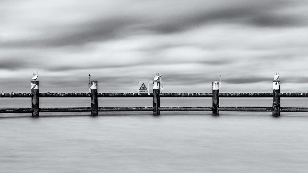 Near the coast of Yerseke is this fence with a sign "Life danger". The shot was taken at long shutter speed to create a still image, with the cloudy sky fading.