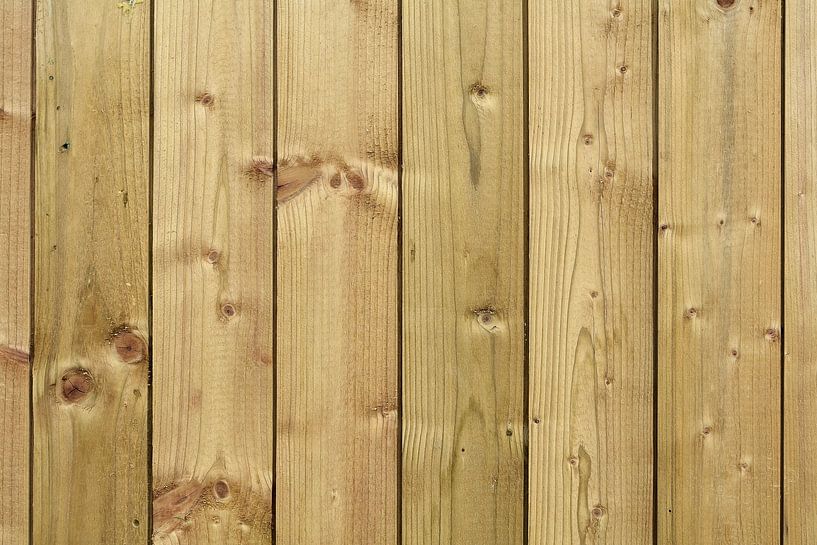 Boards of wood on an impassable structured solid wood wall with recognizable grain of the wood, as a privacy screen to a private property
