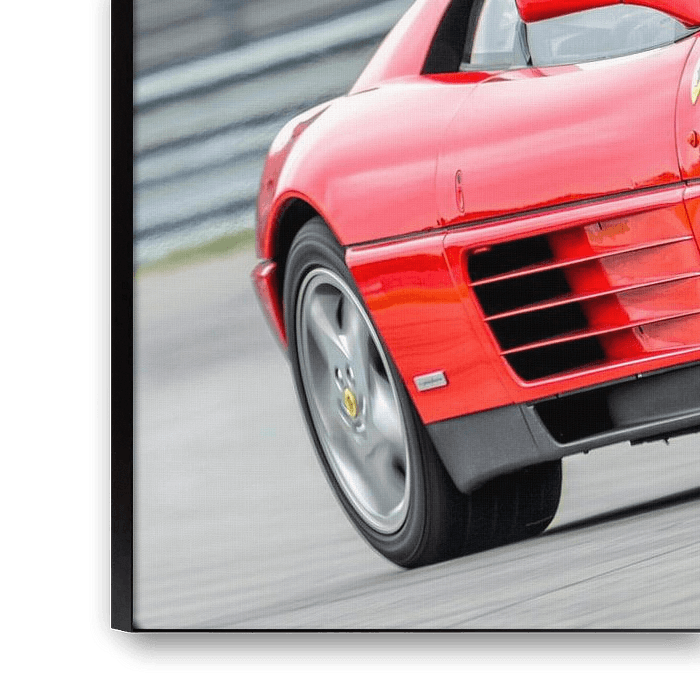 Ferrari 348 TB coupe sports car driving through a corner at a race track.