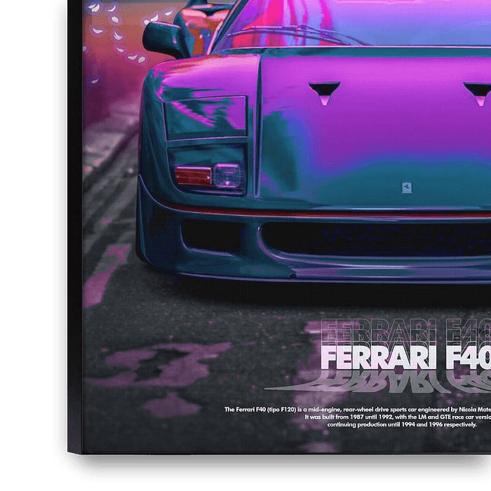 Buy this digital art artwork Ferrari F40 by Ali Firdaus as a reproduction on canvas, ArtFrame, poster and wallpaper, printed on demand in high quality.
