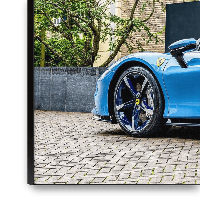 Buy the photo Ferrari SF90 sports car in light blue rear view by Sjoerd van der Wal Photography on canvas, ArtFrame, poster and wallpaper, printed on demand in high quality.