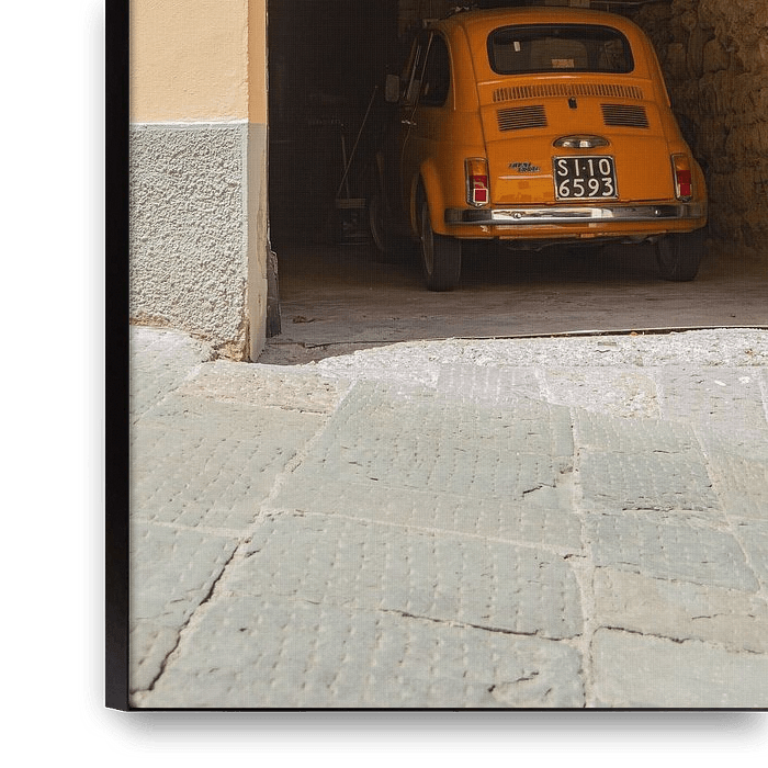 During a sweltering summer day, it suddenly looms up: a Fiat 500 vintage car, parked between ancient stone walls in an authentic Tuscan village. The warm hues of the summer sun, the weathered plasterwork and the car's characteristic curves combine to create an image that exudes pure Italian romance.