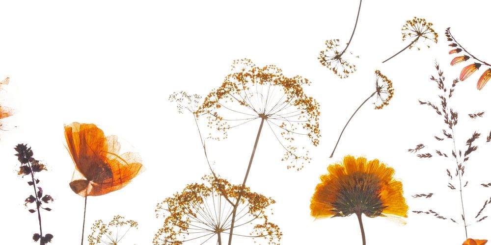 The fields and roadsides of North Holland were strolled for this image. Farmers decided to sow the meadows and roadsides with flower seeds to increase bio diversity. Flower fields full of wildflowers. Beautiful species such as grasses, poppies, violets, Lathyrus, Phlox, Cosmos, Gomphrena and ornamental root beautify the landscape. Butterflies and bees find a home there. The field flowers are dried, pressed and photographed with a special lighting technique. Having spring and summer on your wall will always make you feel happy.