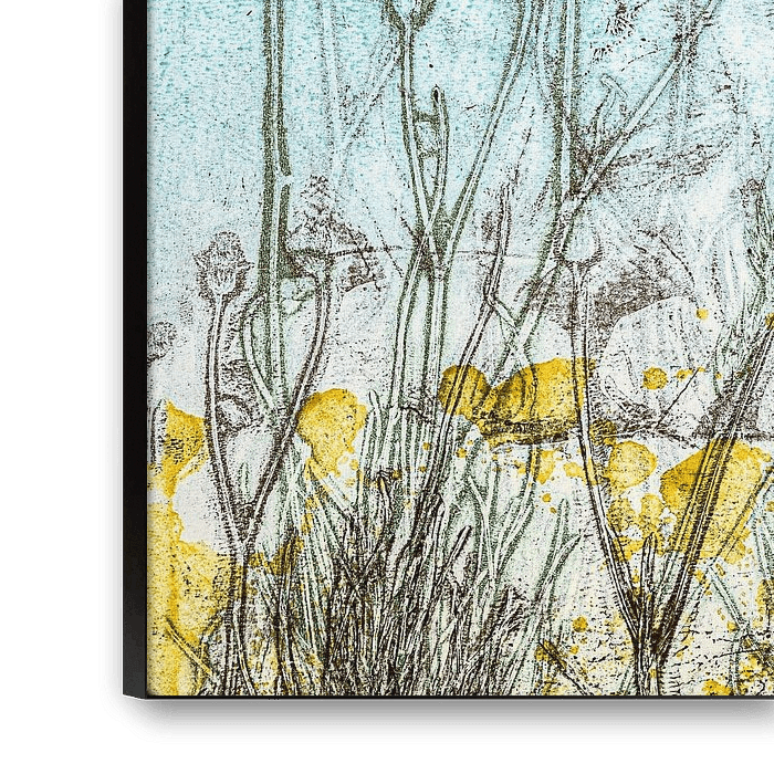 This botanical monotype or monoprint is made with a gelli plate and acrylic paint. A unique and one-off work, only 1 print can be made of your design. The graphic printing technique and the paper used create all kinds of textures and effects. In this work I have picked flowers, plants and grasses in the roadside and printed them in the paint. The print is soft in color and has a dreamy, fairy-tale atmosphere.