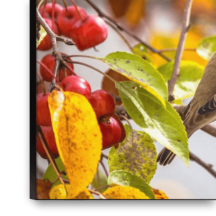 Buy this bird art Field sparrow on apple tree with red apples in autumn by ManfredFotos on canvas, ArtFrame, poster and wallpaper, printed on demand in high quality.