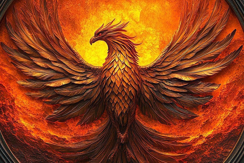 This powerful artwork depicts a phoenix in full splendour, bathed in a fiery glow that symbolises renewal and rebirth. Its detailed, outstretched wings and fiery palette bring warmth and energy to any room where it hangs. The round frame and three-dimensional effect give the feeling that the phoenix is truly coming to life and about to rise from the flames. This artwork is perfect for those looking for a statement piece that symbolises strength, passion and a new start. An inspiring addition to any space that could use a touch of fire and dynamism.