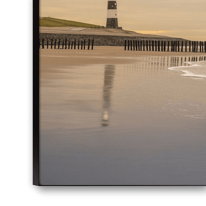 Laat je muren spreken met een prachtig verhaal vertellend modern Fine Art kunstwerk van John van de Gazelle. Want, één beeld zegt meer dan duizend woorden. Creëer met dit prachtig modern Fine Art landschap een oase van rust in je huis. Dit is een prachtig modern Fine Art landschap kunstwerk met de vuurtoren van Breskens tijdens een schilderachtig mooie zonsondergang. Het fraaie zachte licht van de ondergaande zon schijnt prachtig door de dreigende wolken op de vuurtoren en het strand. Het zachte licht van de ondergaande zon zorgt voor een warme sfeer terwijl de dreigende wolken juist voor een koele sfeer in de landschapsfoto zorgen. Het licht van de vuurtoren schijnt prachtig in de schemering. Het kunstwerk is erg bijzonder en sfeervol. De wolken worden fraai gekleurd door het avondrood van de ondergaande zon. De rustige golfslag in de branding kunnen je bijna horen. Dit Fine Art fotografiekunstwerk neemt je mee naar een heerlijke strandwandeling tijdens een mooie zonsondergang naar het strand van Breskens. Deze Fine art landschapsfoto geeft je het gevoel van rust en kalmte. Heb je thuis een lege plek aan de muur of ben je opzoek naar een fraai Fine Art modern fotografiekunstwerk. Dan is dit een prachtige foto voor je lege plek aan de muur te vullen. Een prachtig modern kunstwerk waar je elke dag weer opnieuw van kunt genieten. Dit fraaie Fine art landschap kunstwerk is een prachtige wanddecoratie die bij vele woonstijlen en interieurs past. Vooral bij mensen die van zon, strand en zee houden. Dit Fine Art kunstwerk "Fine Art landschap van de vuurtoren in Breskens tijdens de zonsondergang" word aangeboden door John van de Gazelle fotografie op Werk aan de Muur. De vuurtoren sectorlicht Nieuwesluis (vuurtoren van Breskens) staat op de ingang van de Westerschelde op de Zeedijk. Het is de oudste nog bestaande gietijzeren vuurtoren van Nederland. De vuurtoren werd door de Nederlandse architect Quirinus Harder ontworpen en gebouwd in 1866-1867. De vuurtoren is achtkantig en zwart-wit gestreept geverfd. De vuurtoren is in 2011 buitenwerking gesteld en valt nu onder rijksmonumenten. Laat je muren spreken met dit prachtig Fine Art landschap van de vuurtoren van Breskens tijdens de zonsondergang. Want, één beeld zegt meer dan duizend woorden.