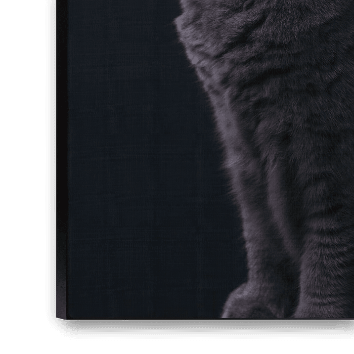 Be mesmerised by this sophisticated fine art portrait of a beautiful grey cat with strikingly bright orange/yellow eyes. Captured in a studio, the photo radiates high quality without any noise. The dark background makes the cat stand out. This stylish portrait is not only a visual delight, but also a valuable addition for your wall. Discover the sheer elegance of this artwork and add a touch of sophistication to your space.