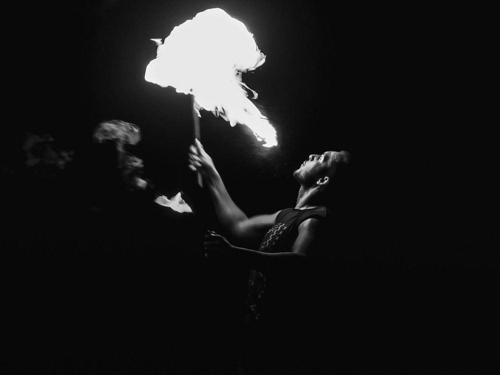 Buy the photo Fire breather Black White by Joren van den Bos on canvas, ArtFrame, poster and wallpaper, printed on demand in high quality.