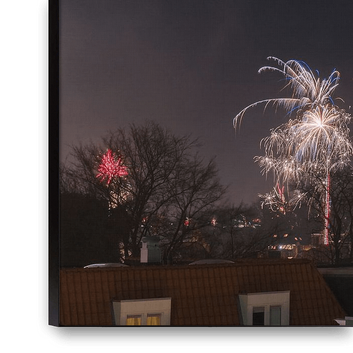 Buy the photo Fireworks at the Grote Kerk of Breda by Esmeralda holman on canvas, ArtFrame, poster and wallpaper, printed on demand in high quality.