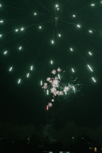 Fireworks are shot off in the sky and give a nice effect. The sky lit up nicely because of the size of the fireworks that were shot off.