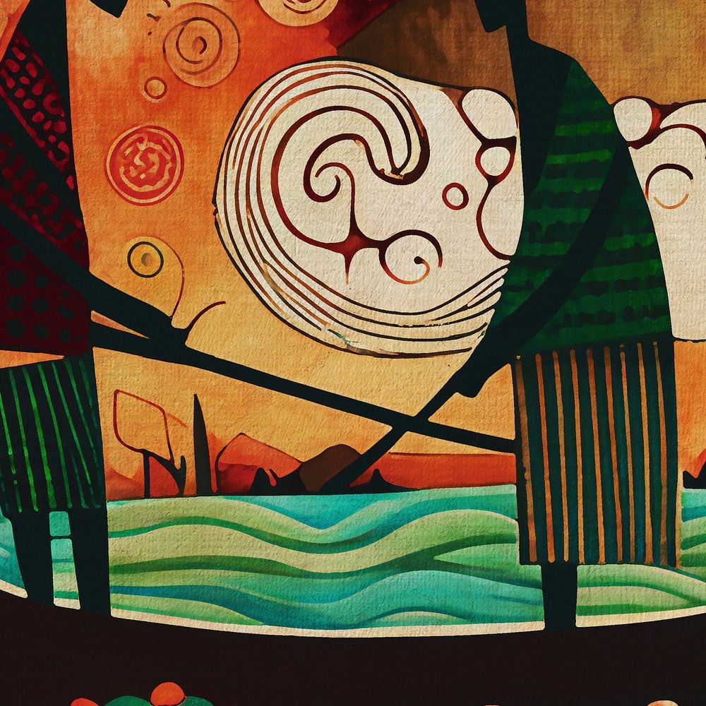 A painting by Belgian artist Jan Keteleer, Fishermen in Africa at Work, is an expressionist painting made with acrylic on panel that captures the essence of communal life in a serene African setting. It is a vivid work of art that highlights the hardworking local fishermen of the continent, with an emphasis on their daily struggle and the importance of the collective in finding success.