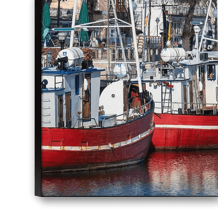 Buy the photo Fishing boats in Warnemuende, Germany by Rico Ködder on canvas, ArtFrame, poster and wallpaper, printed on demand in high quality.