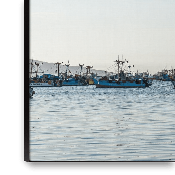 Buy the photo Fishing boats in the bay of Paracas by Joost Potma on canvas, ArtFrame, poster and wallpaper, printed on demand in high quality.