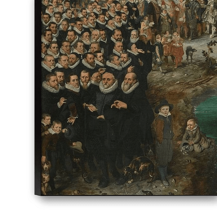 Fishing for souls, Adriaen Pietersz van de Venne, 1614 oil on panel, h 98.5cm × w 187.8cm On the left are the Protestant Northern Dutch, on the right the Roman Catholic Southerners. In the wide river that separates them, both sides are fishing for souls. The Protestants' catch exceeds that of the Catholics. Moreover, the sun is shining on the left and the trees are in leaf. It is a reference to a psalm text: the true believer is like a tree bearing fruit whose leaves do not wither.