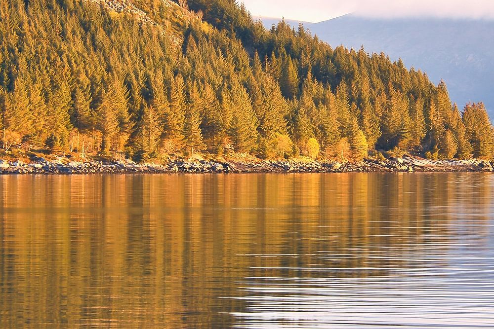 About "Fjord in Norway, cloudy sky"