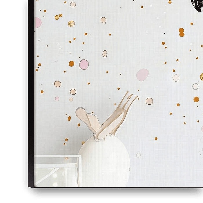 This magnificent watercolour painting presents a flamingo with a golden crown surrounded by sparkling gold dots. The majestic depiction in soft pink tones combined with precious gold accents gives the painting a regal elegance. Perfect for anyone looking for unique and stylish decoration, this artwork brings a touch of luxury and grace…