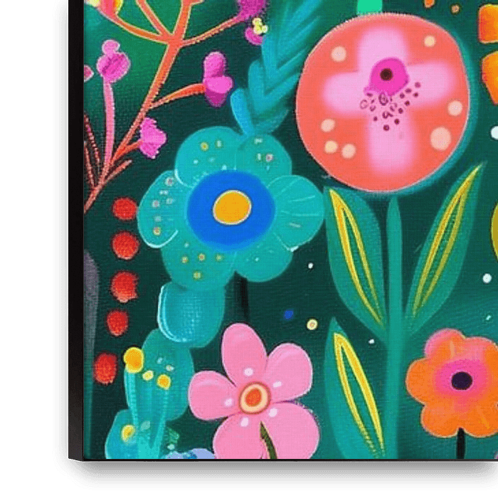 "Flamingo in the Flower Garden" is a colourful fantasy that takes the viewer into a world full of flowers and magic. A striking flamingo is the shining centrepiece in this botanical oasis, surrounded by a diversity of flowers and a charming butterfly. This playful and joyful work is an ode to nature and its vibrant inhabitants.