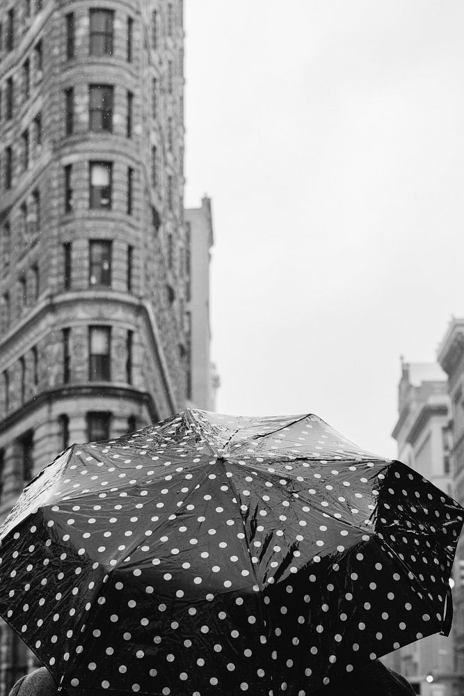 Two people walking together under an umbrella on a rainy day in New York City.
