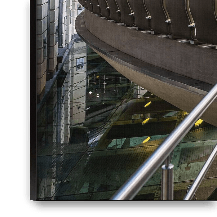The Flemish Parliament is an interesting piece of democracy as well as architecture. As a press photographer, I often visit it. And the details do not escape me, such as the interesting glass dome and this glass walkway.