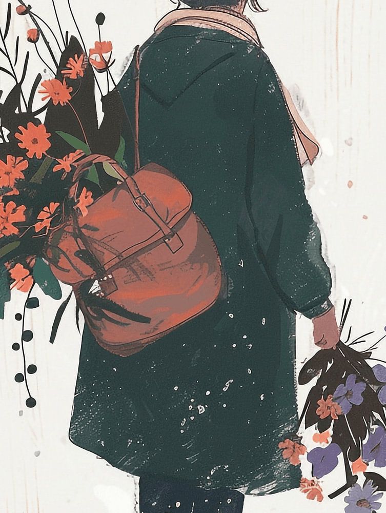 Woman walks home after buying flowers