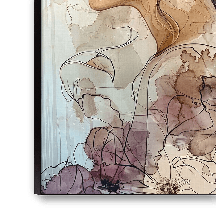 Watercolour profile portrait of a woman in soft natural and lilac tones with watercolour, ink and line drawing elements on paper.
