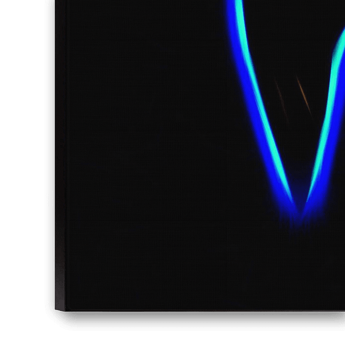 The abstract silhouette of a bird rises out of the darkness in bright shades of blue, orange and yellow. The lines appear to be moulded from energy and lend the picture a dynamic, almost futuristic appearance