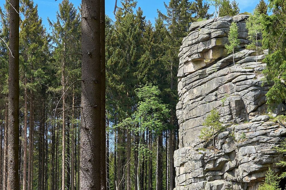 The Flint Cliffs, Feuersteinklippen, also called Schierker Feuerstein. A rock formation near the town of Schierke at the foot of the Brocken in the Harz National Park in Germany.