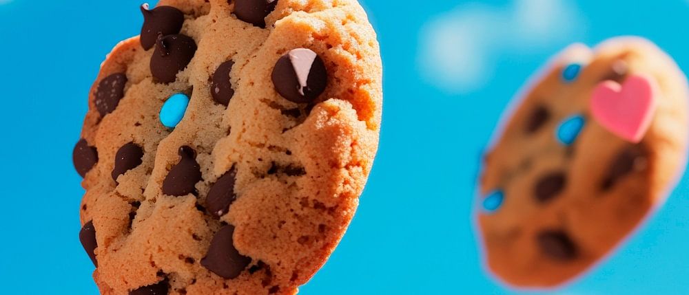 In a sweet dream, crispy cookies full of chocolate chips and colourful hearts fly through a bright blue sky. Their playful arrangement puts a smile on every face and transforms the kitchen into a place full of joy and conviviality. This picture is perfect for the room where culinary magic comes to life.