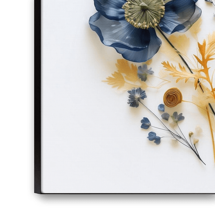 The composition is like opening a book where flowers have been compressed into dried flowers, with different flower types carefully arranged to form an enchanting whole. The photo-realistic approach makes the flowers seem almost tangible, transporting the viewer into a world of imagination and beauty.