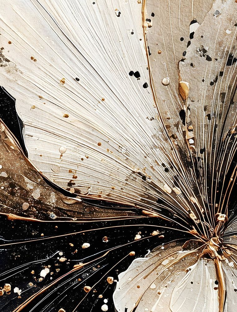 Abstract flower in earth tones with gold accents and a coarse texture.