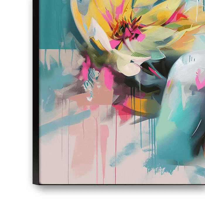 Colourful abstract portrait of a woman with flowers in fresh pastel colours.