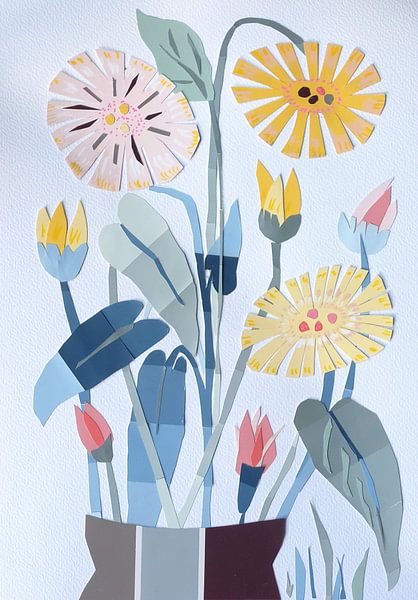 Buy this flower art Floral Paper work Collage Daisies by Annick on canvas, ArtFrame, poster and wallpaper, printed on demand in high quality.