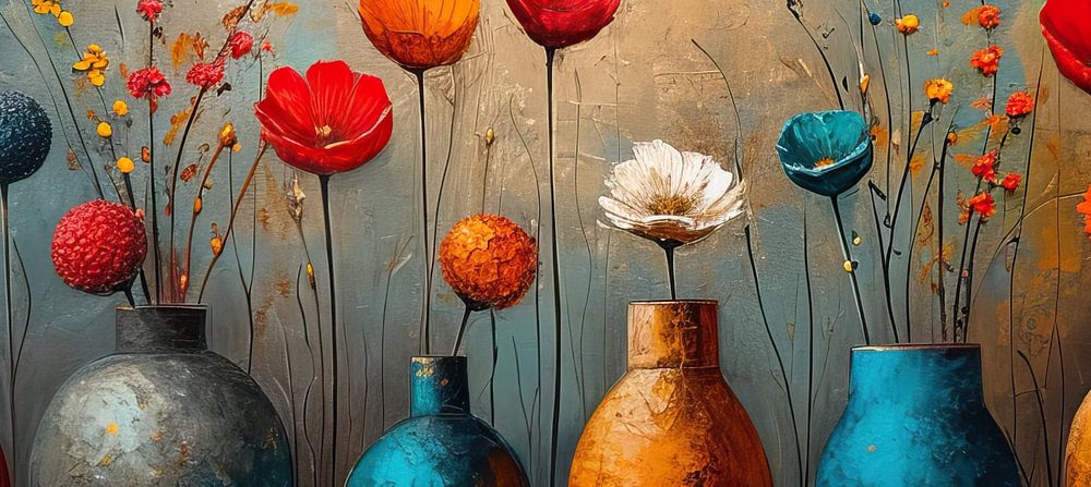 Details: still life, flowers, vase, colourful, abstract, modern, canvas, interior, art, decoration