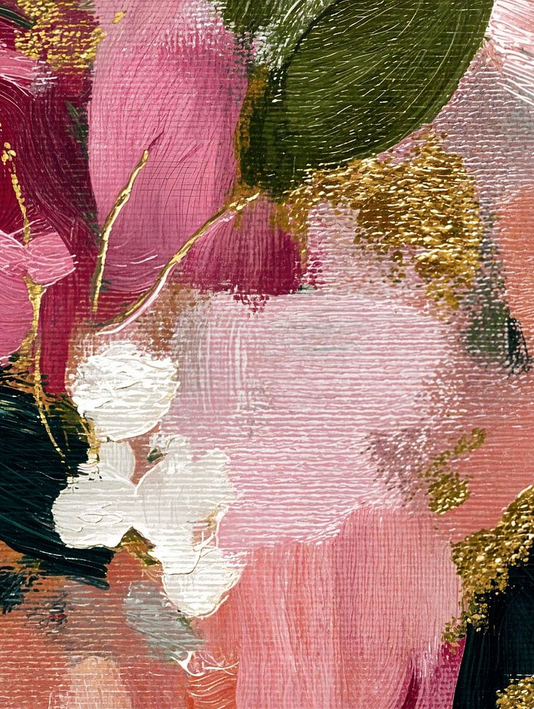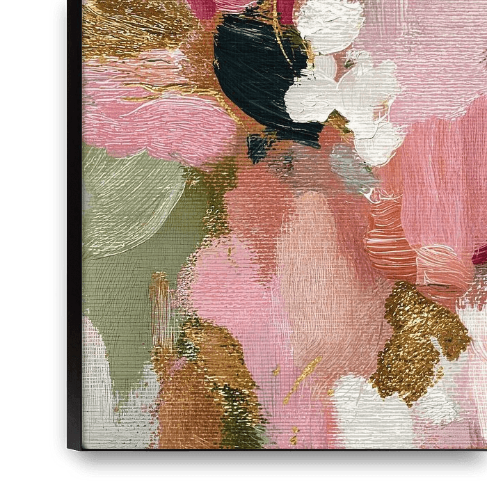 An expressive floral abstract work with layers of pink, green, cream and warm earth tones. The loose brushwork and rich texture create a painterly and romantic feel, perfect for an atmospheric and personal interior.